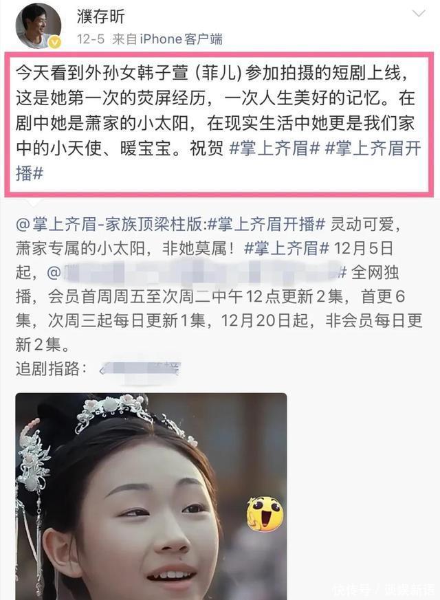 只见平时低调的他,竟连发多条微博, 为自己外孙女的影视作品站台 ,字里行间满是骄傲。 谁也没料到,这份隔辈亲的温情安利, 转眼就变成了全网群嘲的修罗场。