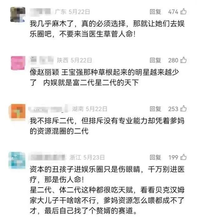 就像有网友说的: “我们寒窗苦读十几年,努力学表演、练才艺,最后连个露脸的机会都没有。 可星二代动动嘴就能当主角,这太不公平了。”